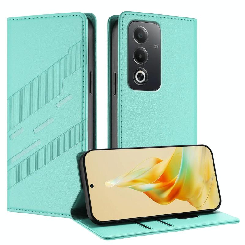 For OPPO A80 5G Embossed Multi-functional Wallet Retro Leather Phone Case(Mint Green)