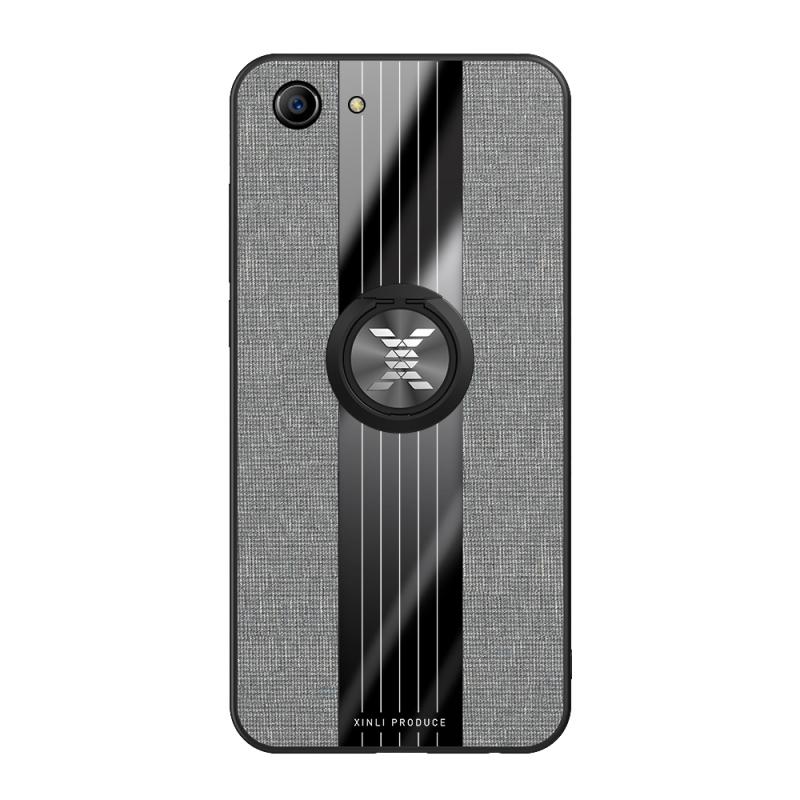 For OPPO A83 XINLI Stitching Cloth Textue Shockproof TPU Protective Case with Ring Holder(Grey) (XINLI)