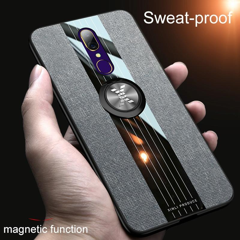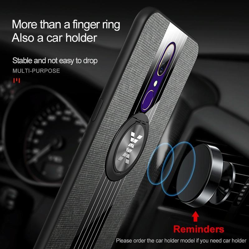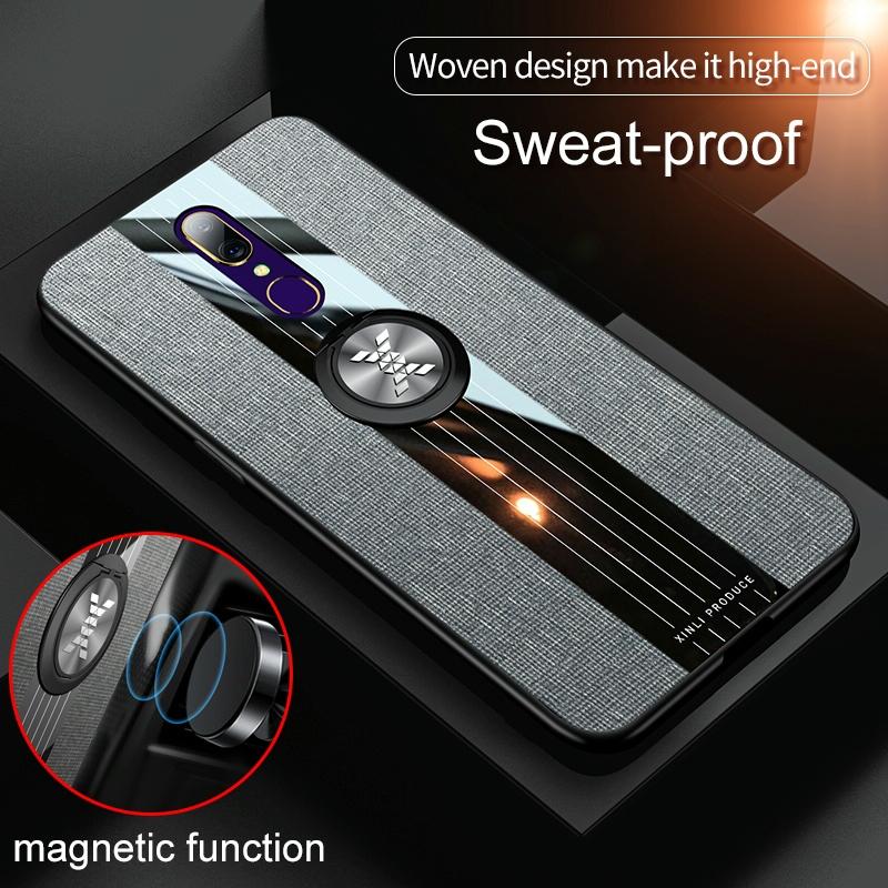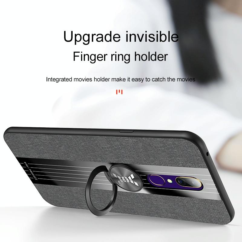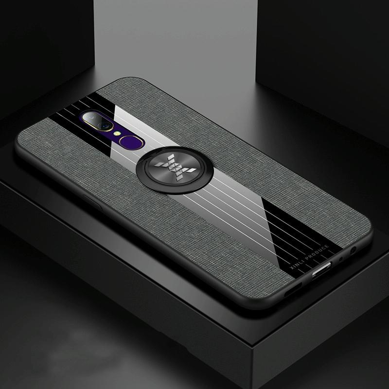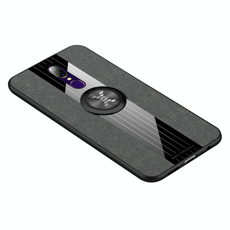 For OPPO A9 XINLI Stitching Cloth Textue Shockproof TPU Protective Case with Ring Holder(Grey) (XINLI)