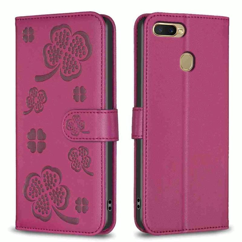 For OPPO A92 / A72 / A52 Four-leaf Embossed Leather Phone Case(Rose Red)