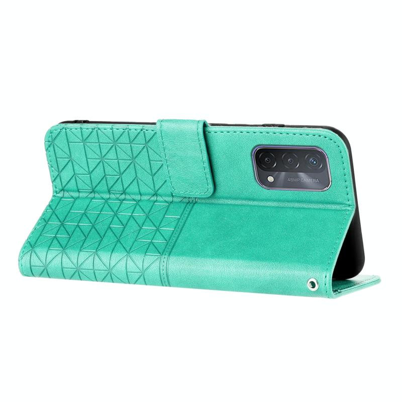 For OPPO A93 5G Rhombic Texture Leather Phone Case with Lanyard(Green)