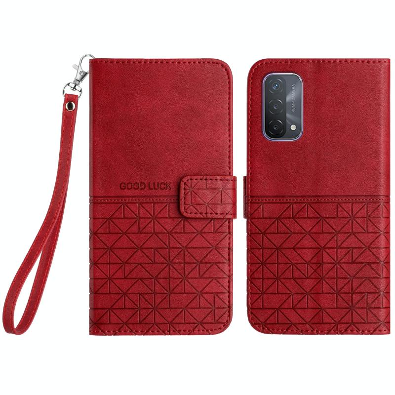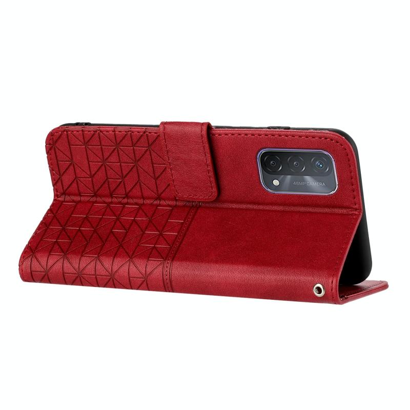 For OPPO A93 5G Rhombic Texture Leather Phone Case with Lanyard(Red)