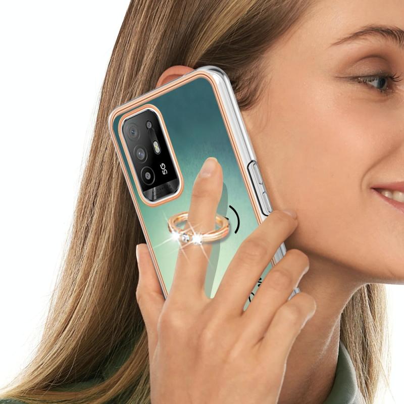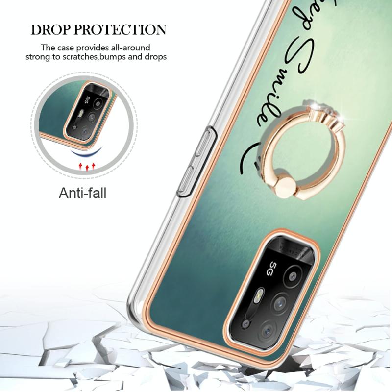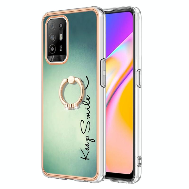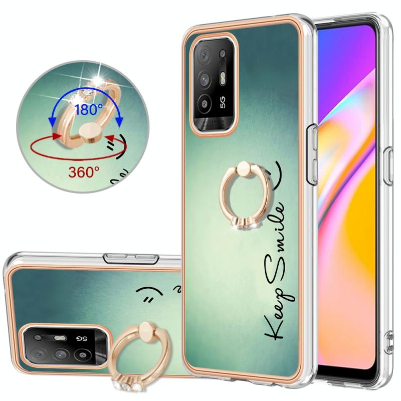 For OPPO A94 5G / A95 5G Electroplating Dual-side IMD Phone Case with Ring Holder(Smile)
