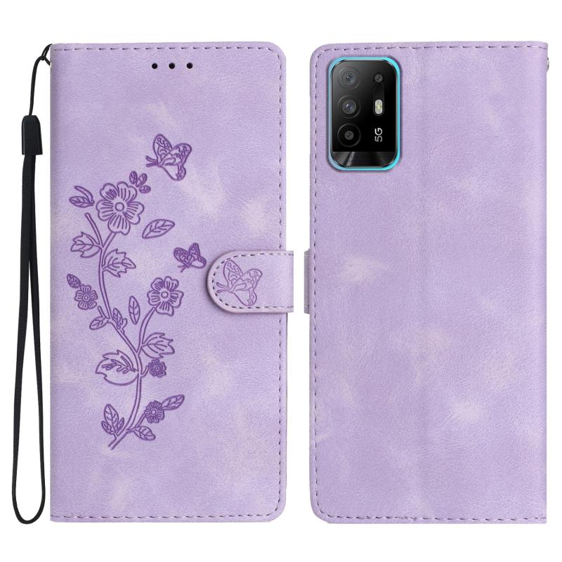 For OPPO A94 5G Flower Butterfly Embossing Pattern Leather Phone Case(Purple)