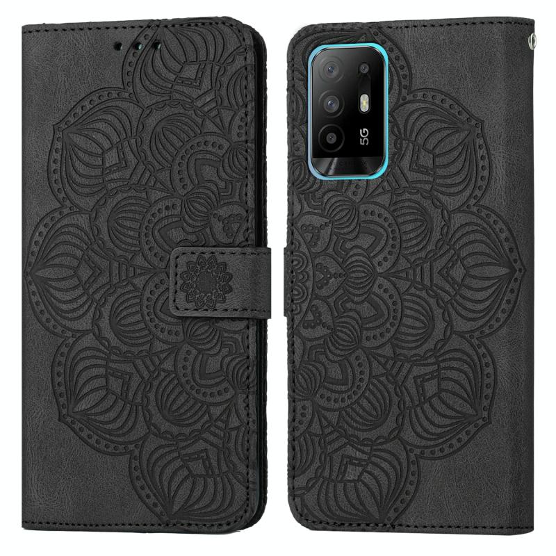 For OPPO A94 5G Mandala Embossed Flip Leather Phone Case(Black)