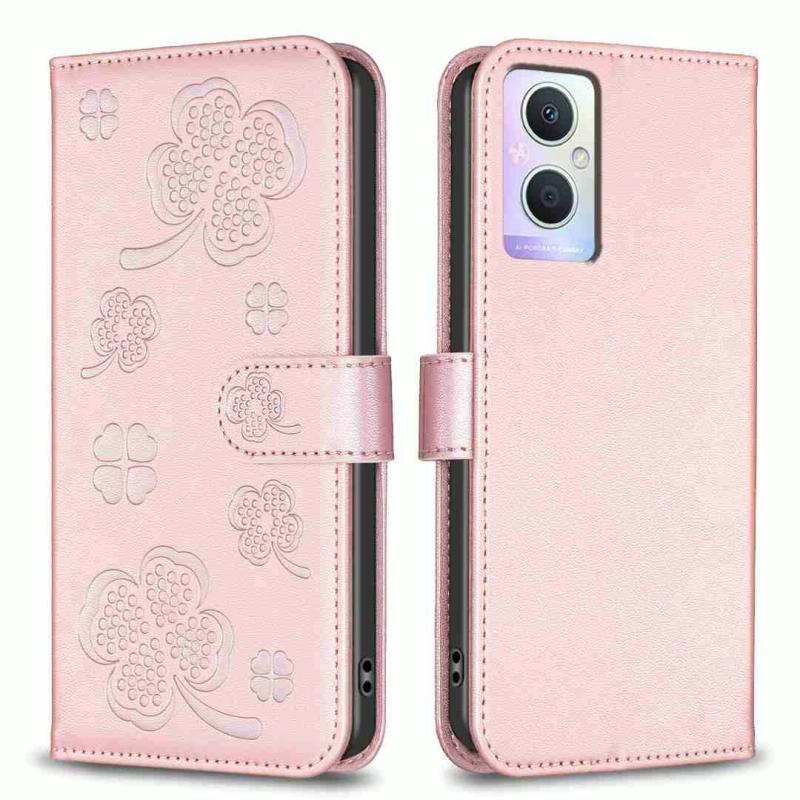 For OPPO A96 5G / Reno7 Z Four-leaf Embossed Leather Phone Case(Pink)