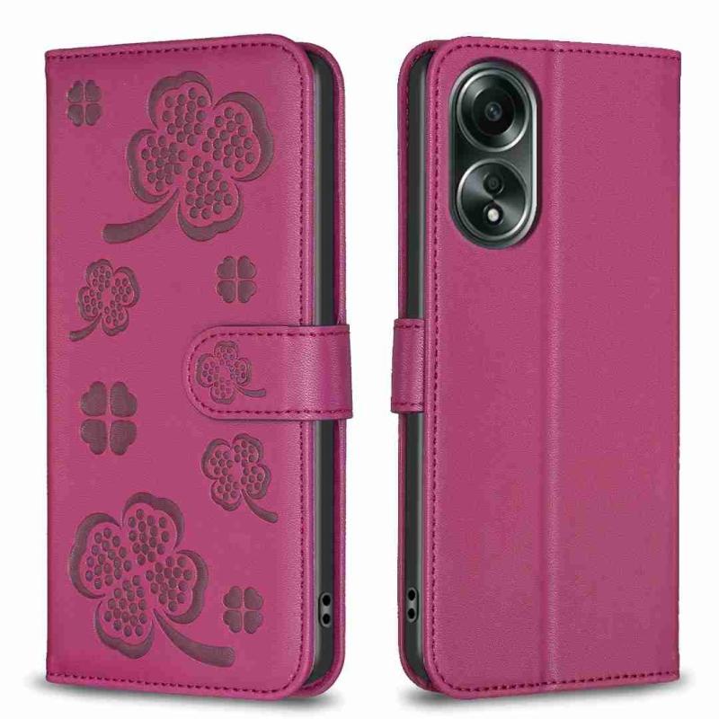 For OPPO A98 5G Four-leaf Embossed Leather Phone Case(Rose Red)