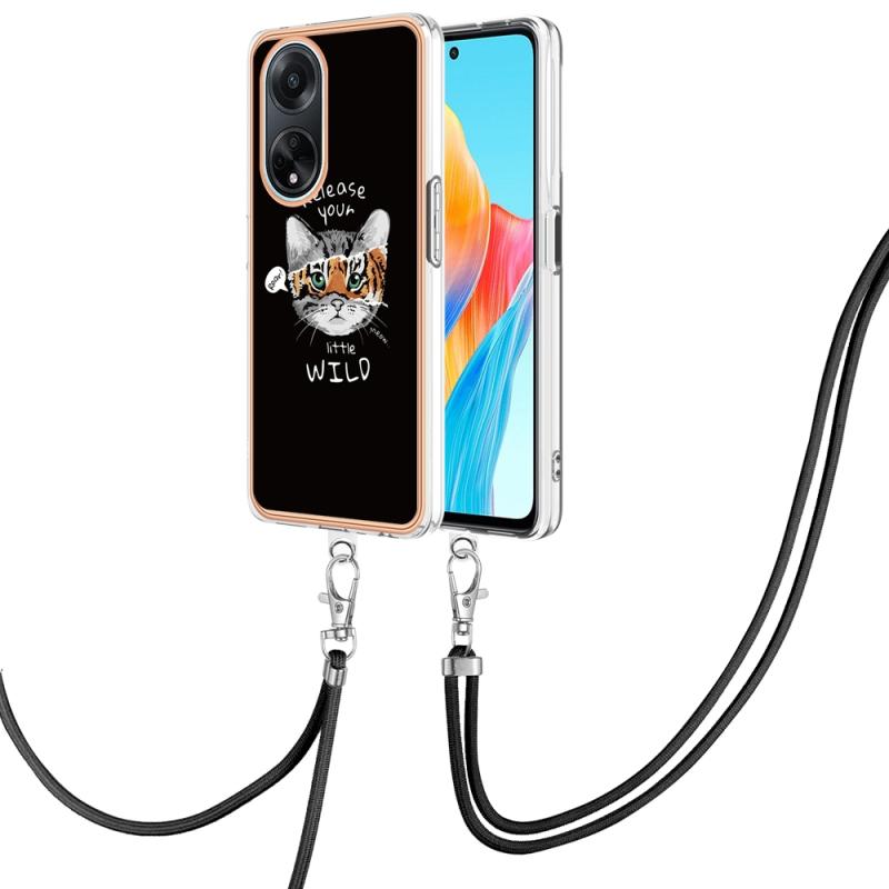For OPPO A98 Electroplating Dual-side IMD Phone Case with Lanyard(Natural Growth)