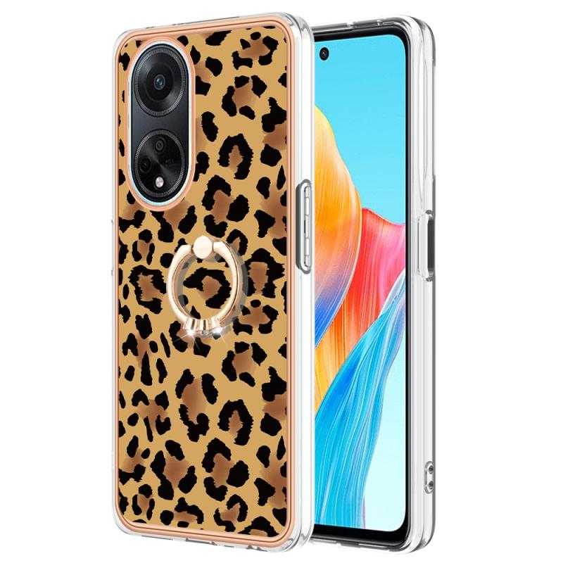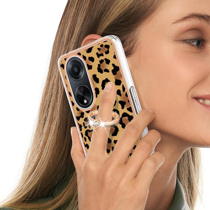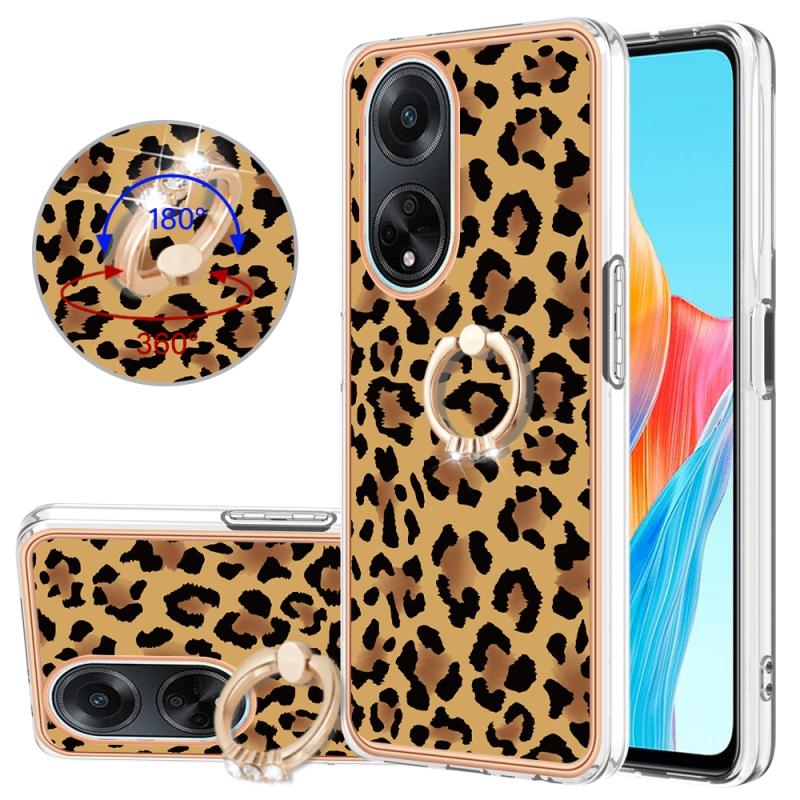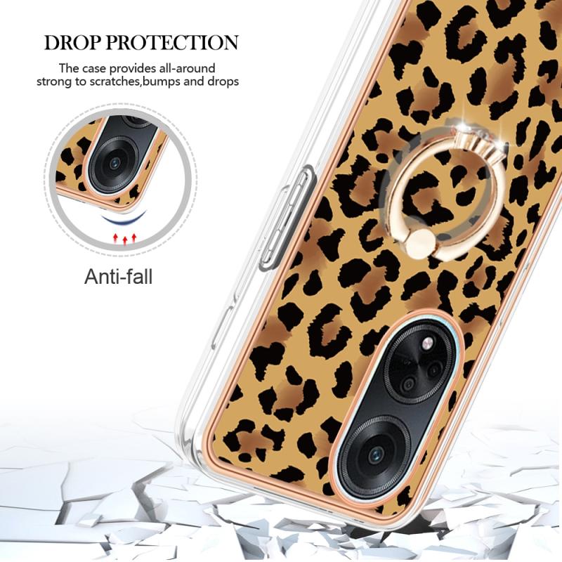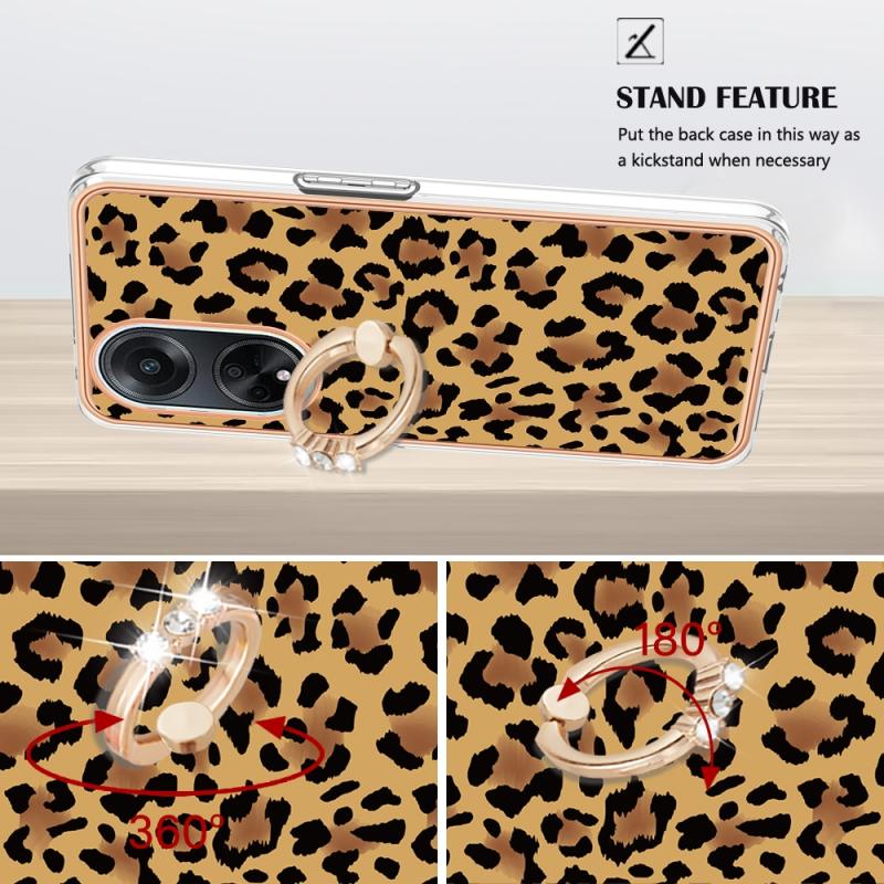 For OPPO A98 Electroplating Dual-side IMD Phone Case with Ring Holder(Leopard Print)