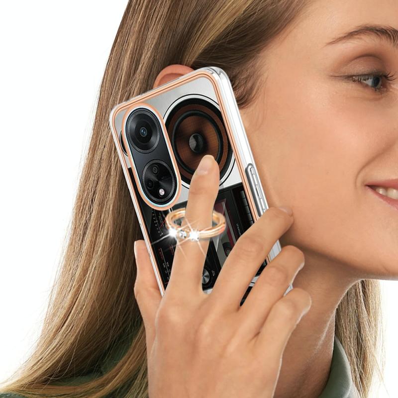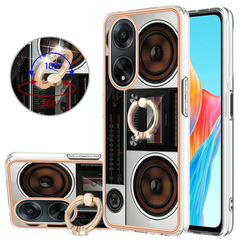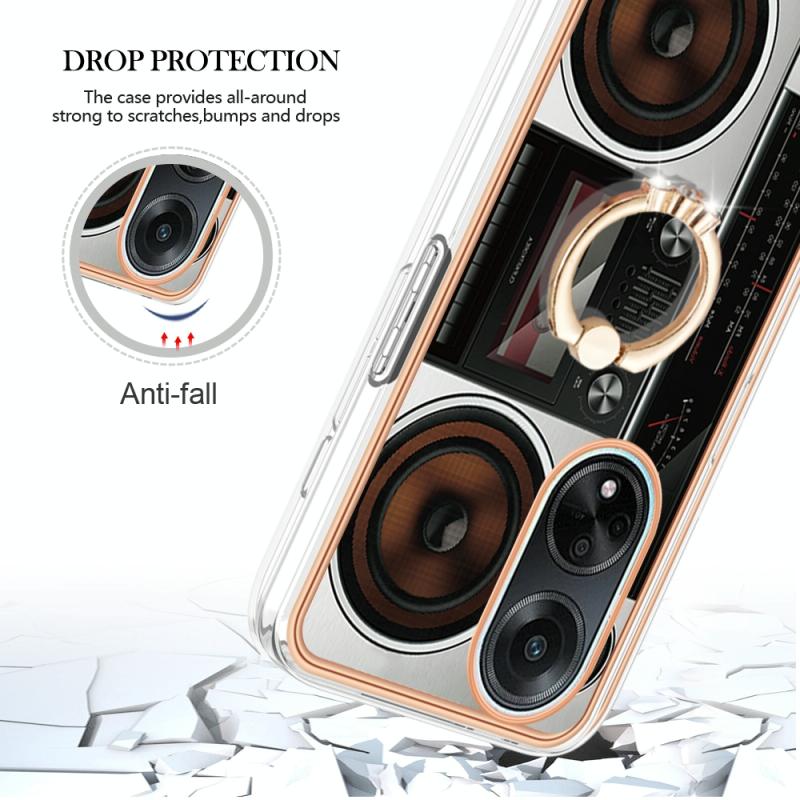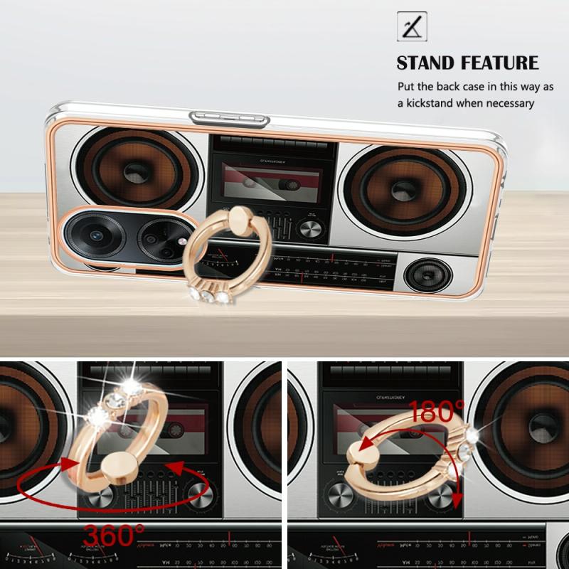 For OPPO A98 Electroplating Dual-side IMD Phone Case with Ring Holder(Retro Radio)