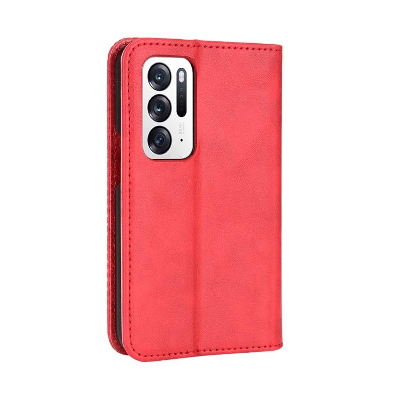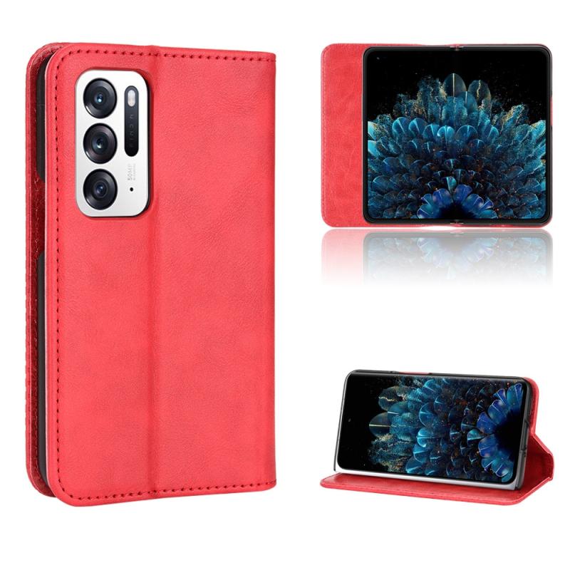 For OPPO Find N Magnetic Buckle Retro Texture Leather Phone Case(Red)