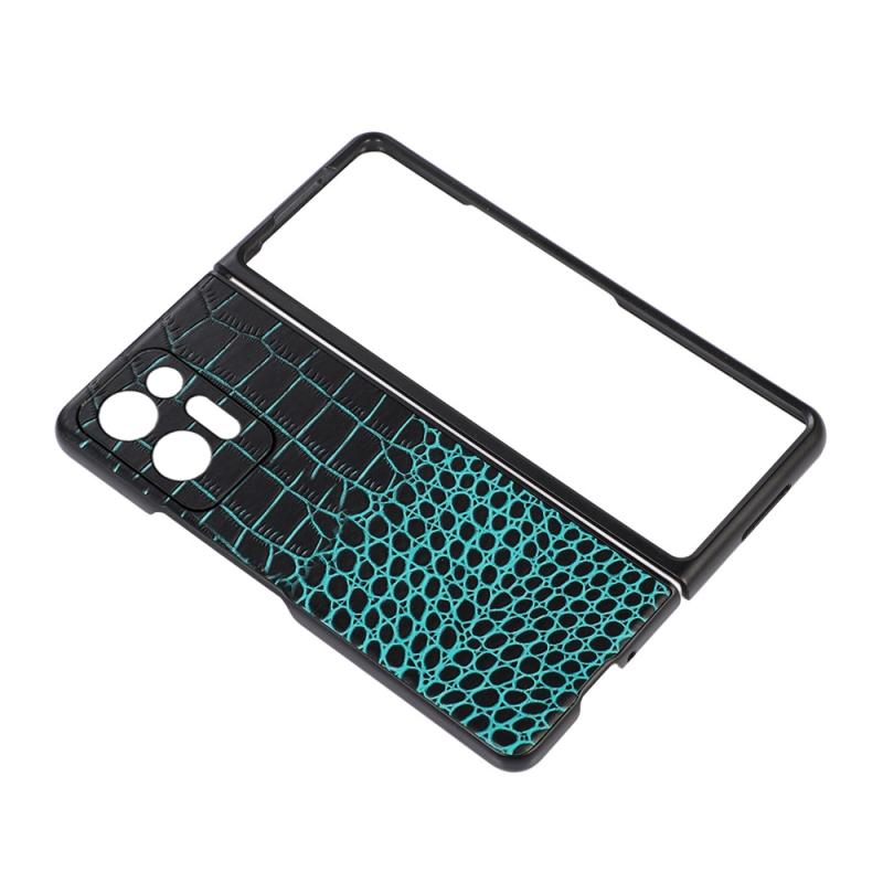 For OPPO Find N2 Crocodile Top Layer Cowhide Leather Phone Case(Cyan Blue)