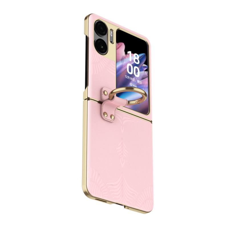 For OPPO Find N2 Flip Electroplated Embossed Leather Phone Case with Ring(Pink)