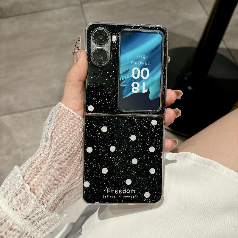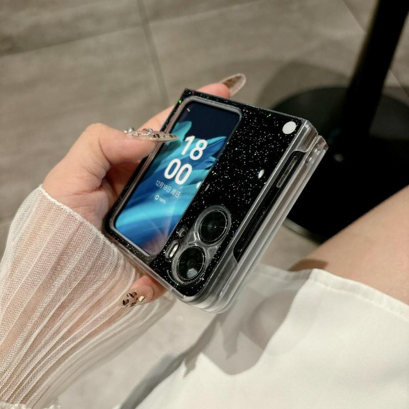 For OPPO Find N2 Flip Glitter Powder Dots Pattern Phone Case(Black)