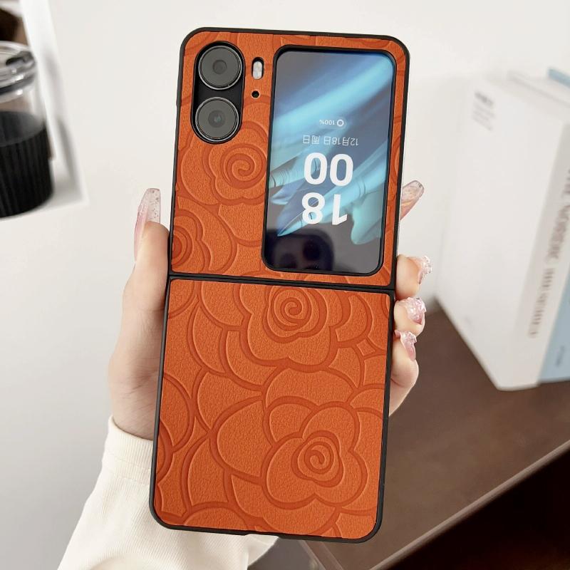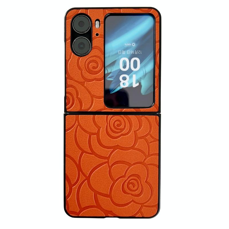 For OPPO Find N2 Flip Impression Flower Pattern Protective Phone Case(Orange)