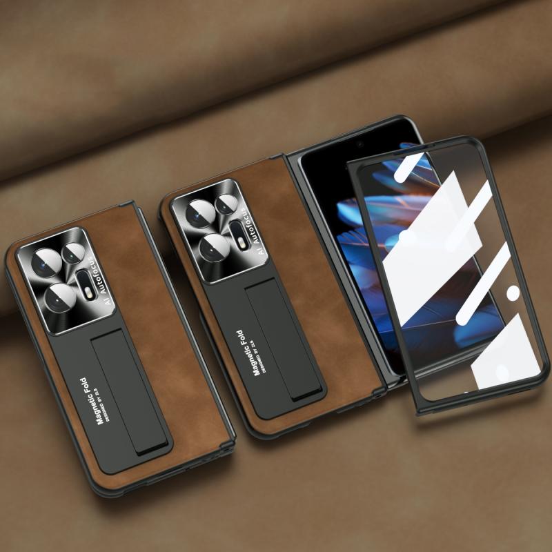 For OPPO Find N2 Integrated Napa Pattern All-inclusive Magnetic Phone Case(Brown)