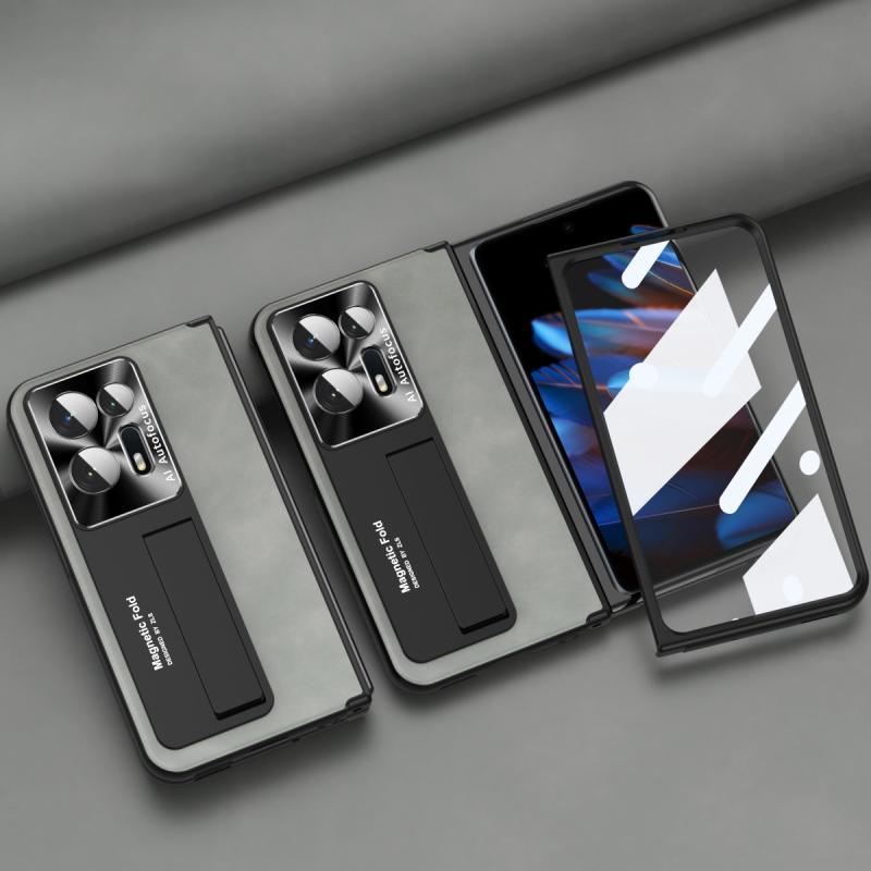 For OPPO Find N2 Integrated Napa Pattern All-inclusive Magnetic Phone Case(White)