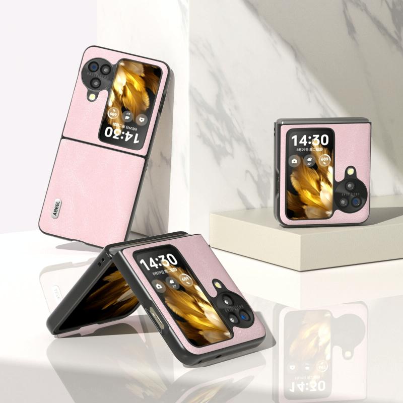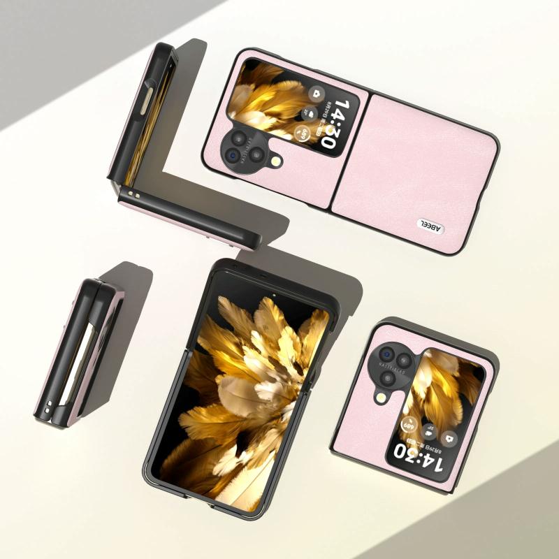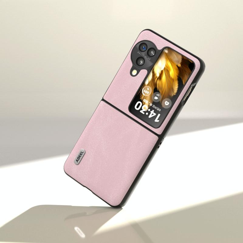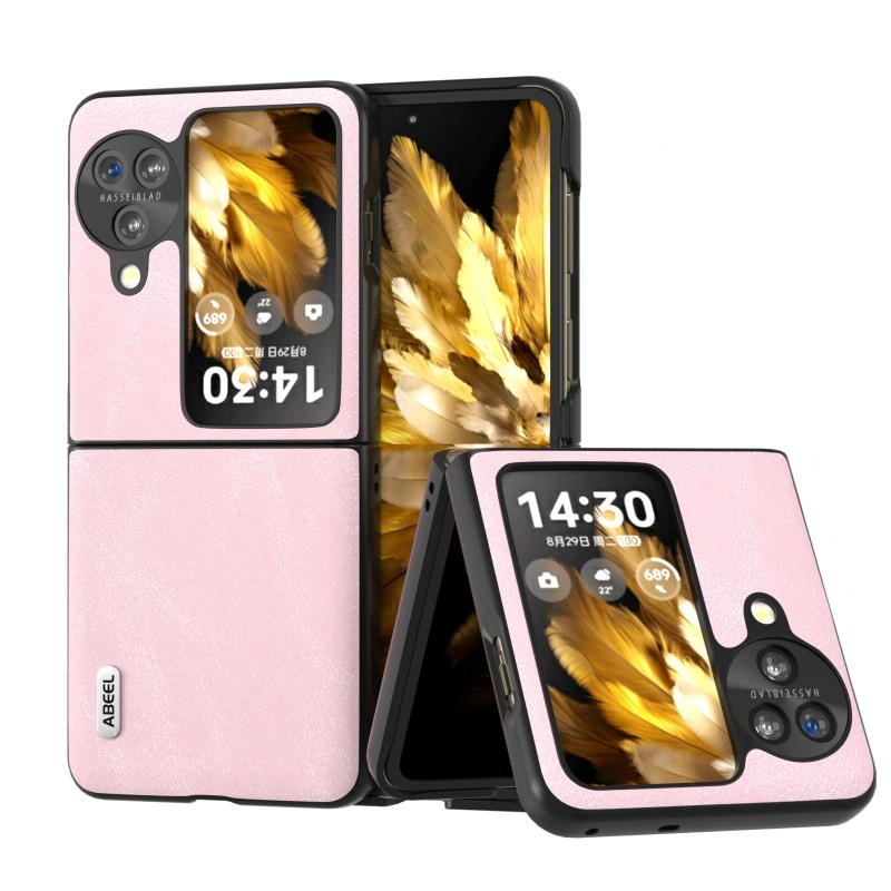 For OPPO Find N3 Flip ABEEL Cowhide Texture PU Phone Case(Pink)
