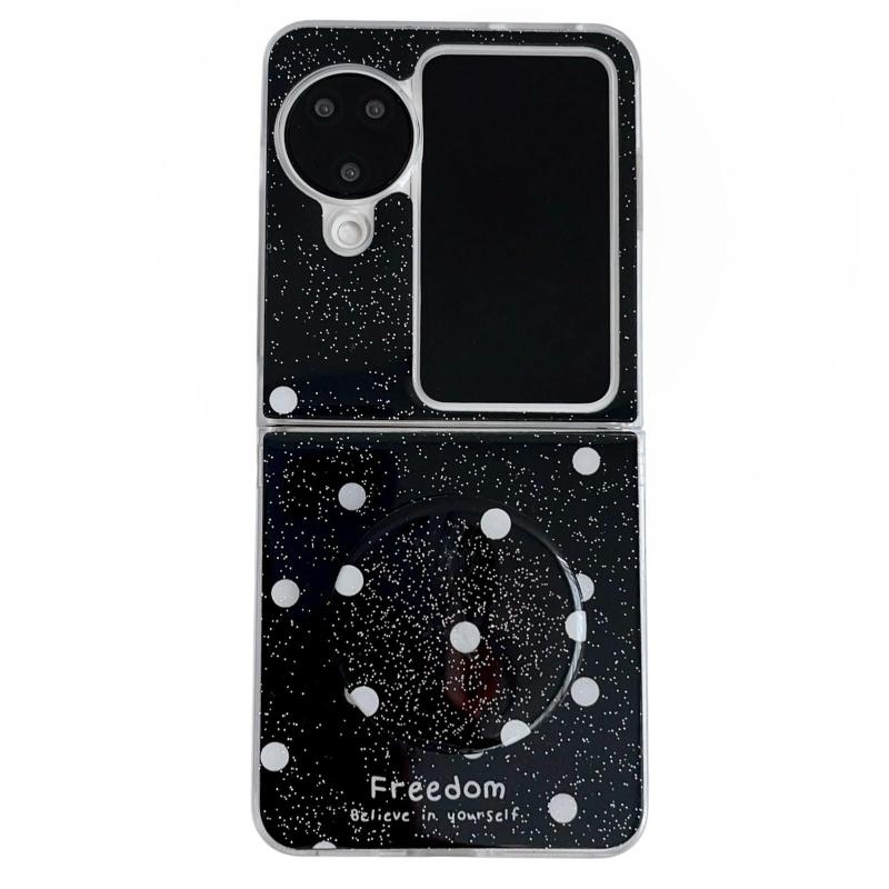 For OPPO Find N3 Flip Glitter Powder Dots Pattern Phone Case with Holder(Black)