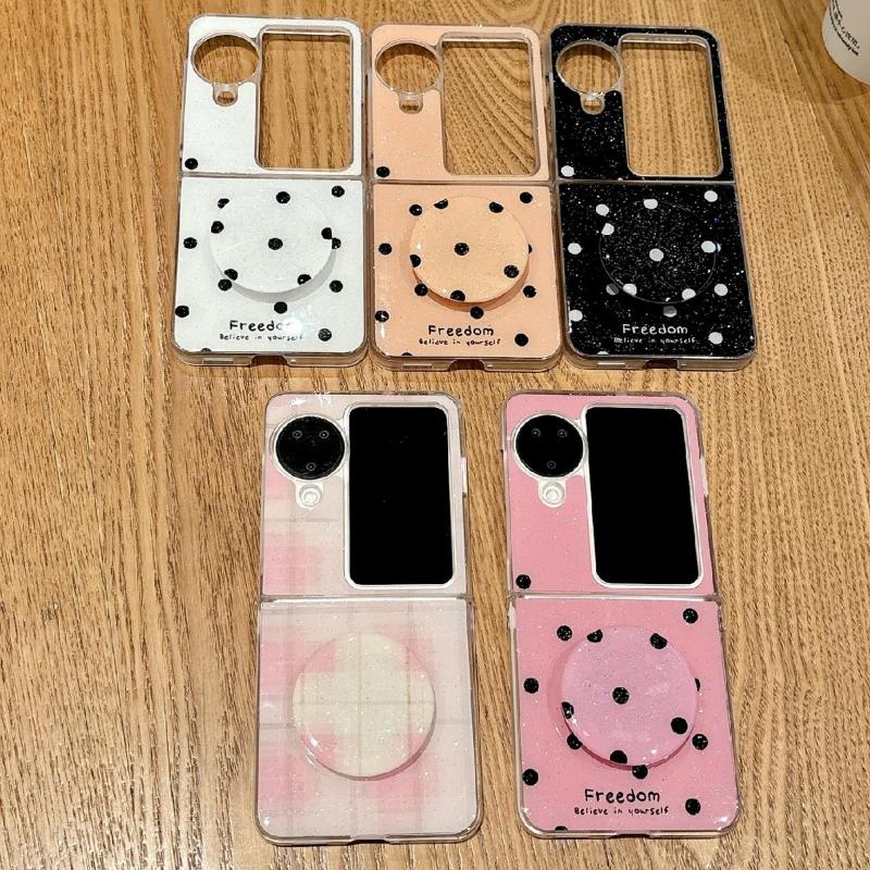 For OPPO Find N3 Flip Glitter Powder Dots Pattern Phone Case with Holder(Gold)