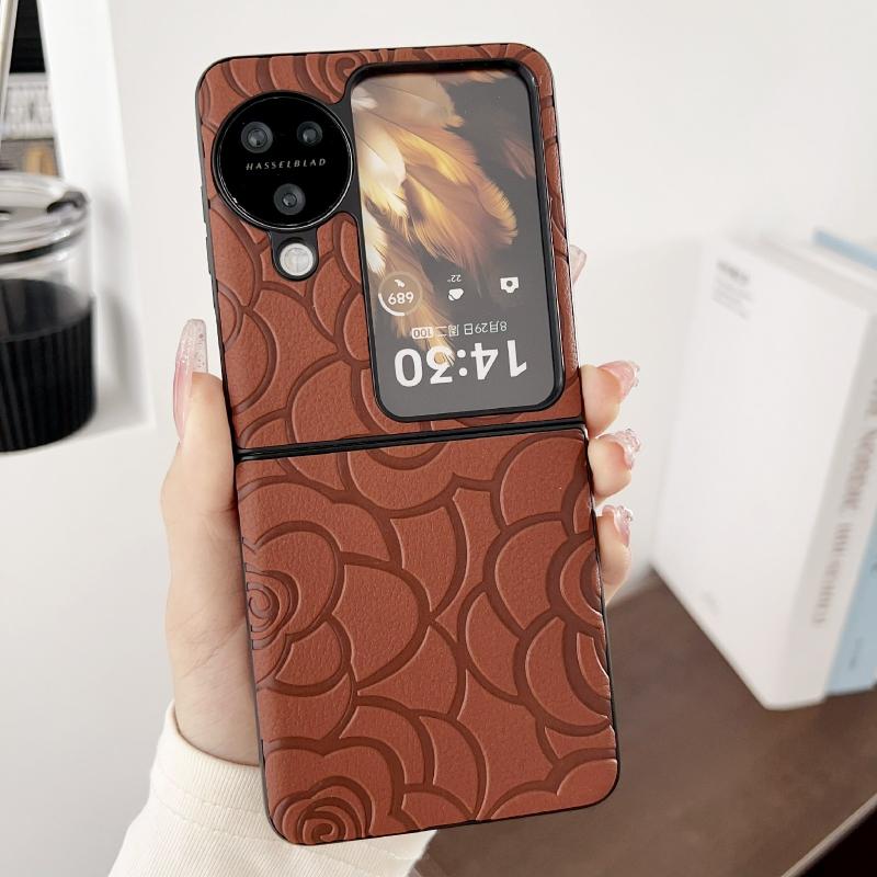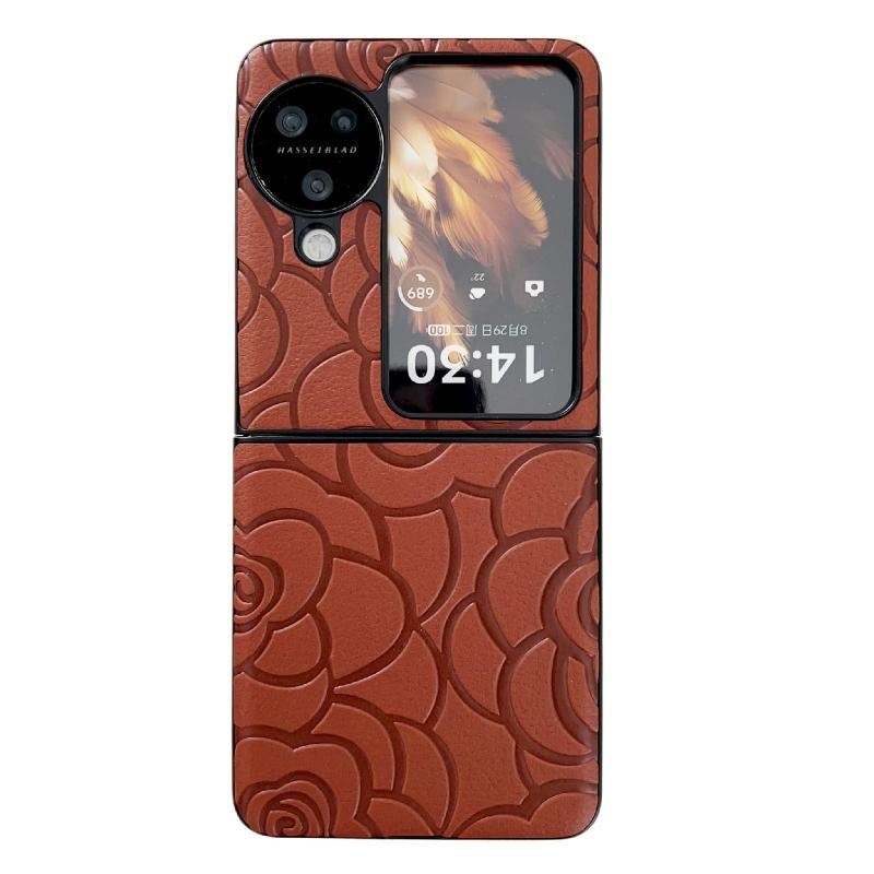 For OPPO Find N3 Flip Impression Flower Pattern Protective Phone Case(Brown)