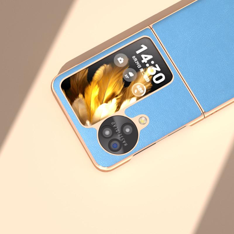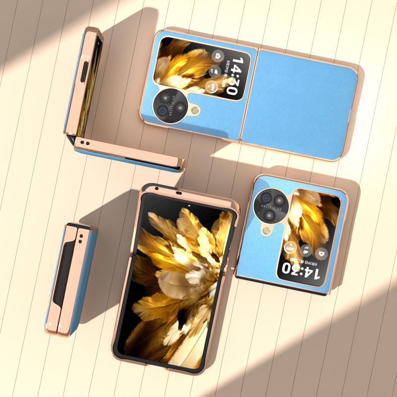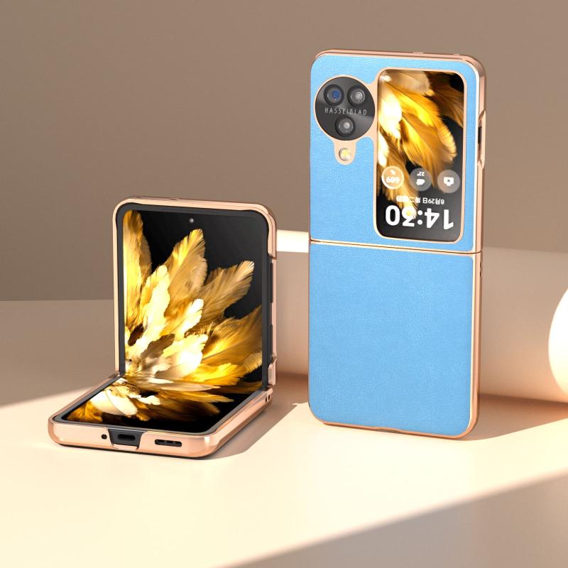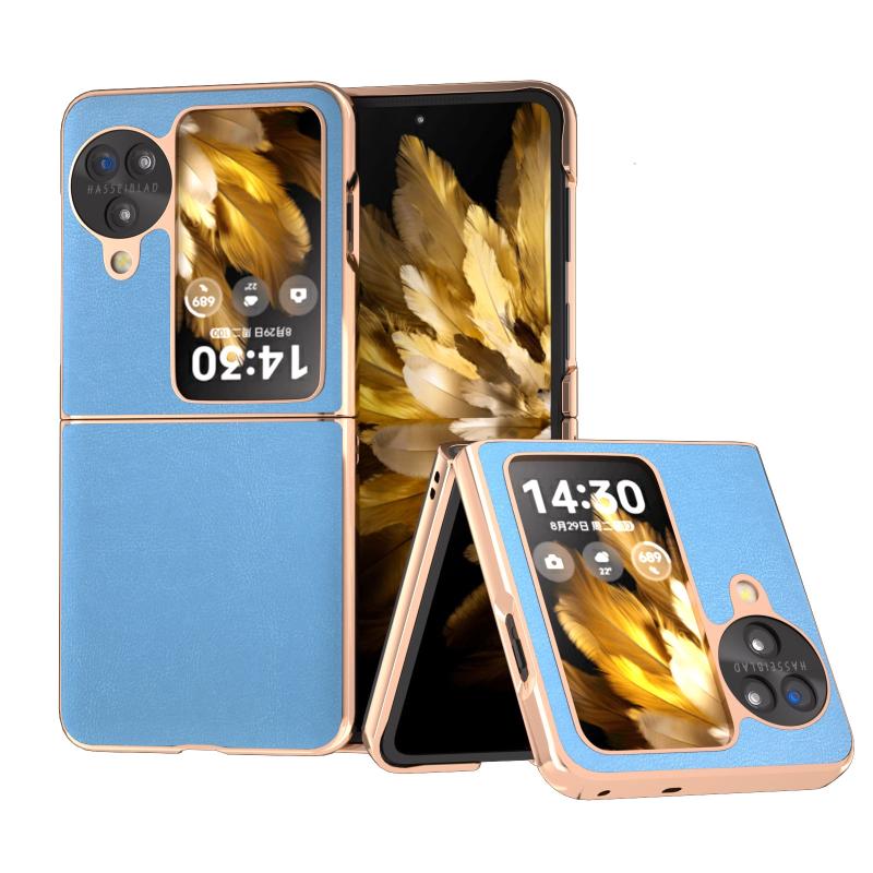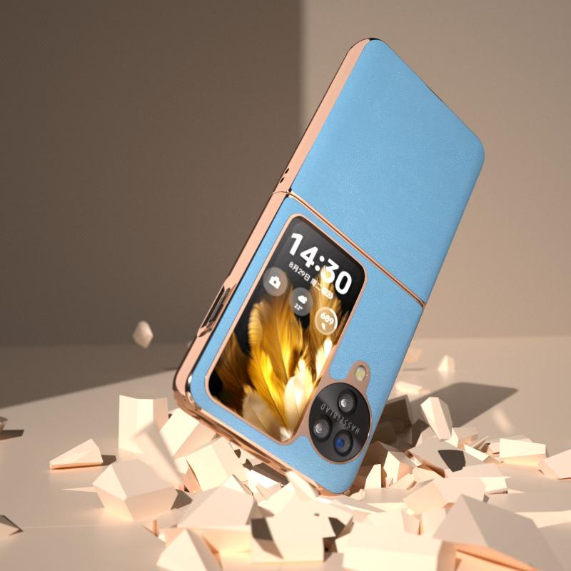 For OPPO Find N3 Flip Nano Electroplating Haze Texture PU Phone Case(Sky Blue)