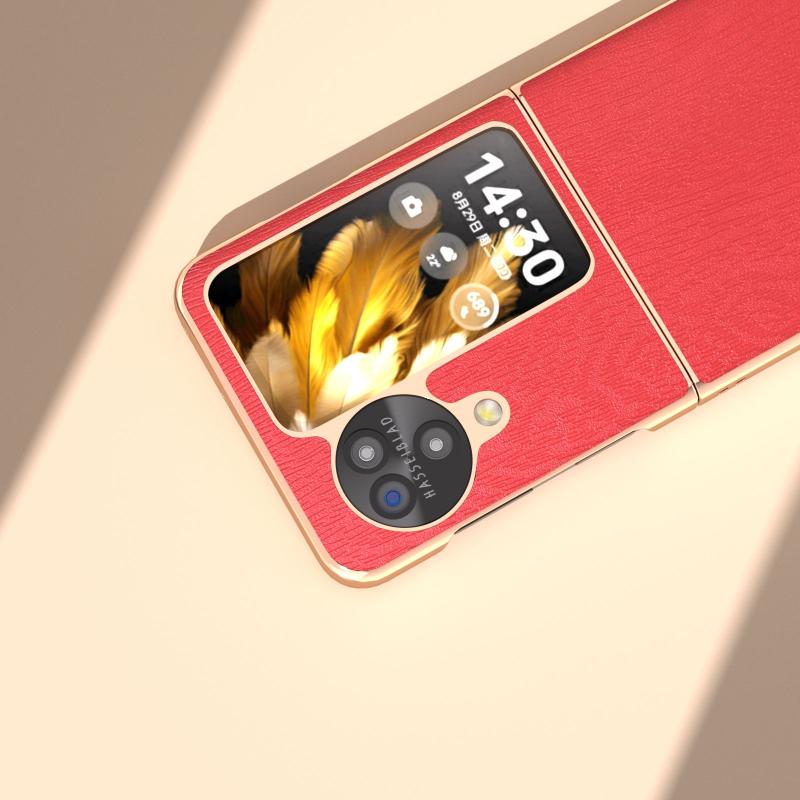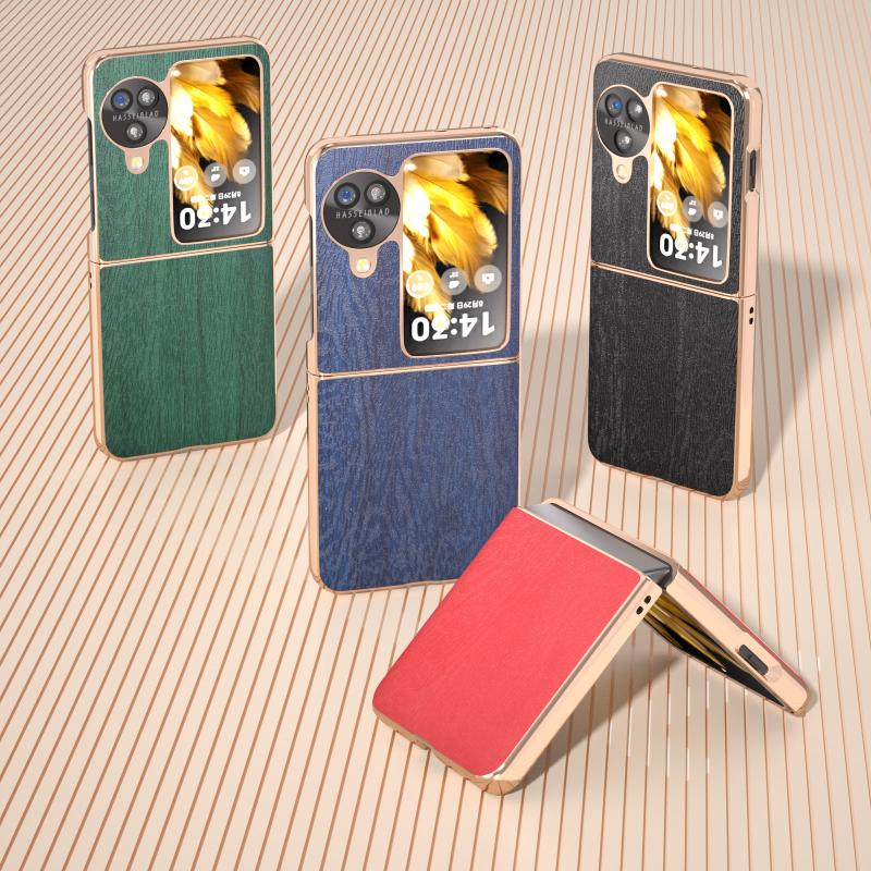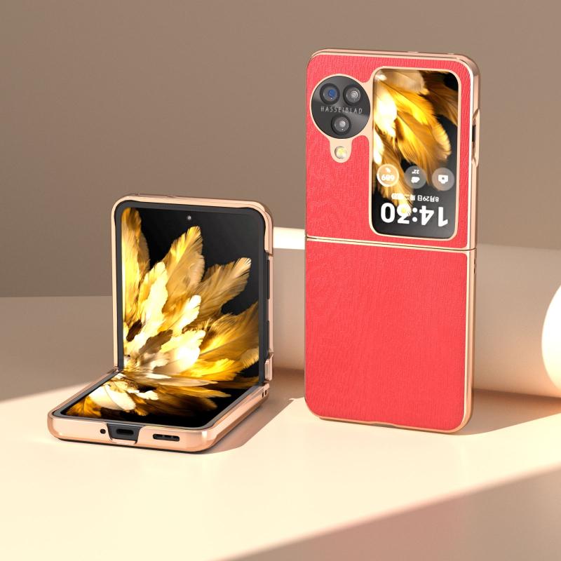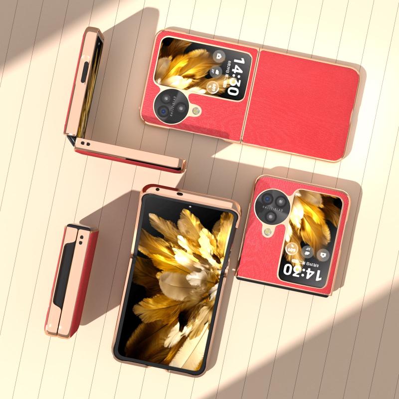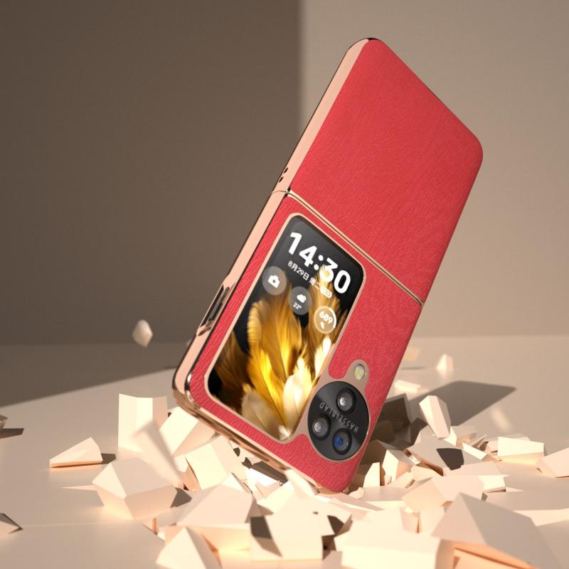 For OPPO Find N3 Flip Nano Plating Wood Texture PU Phone Case(Red)