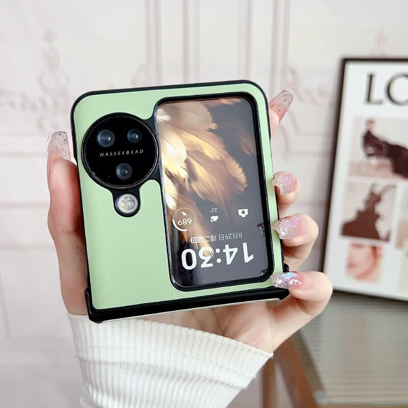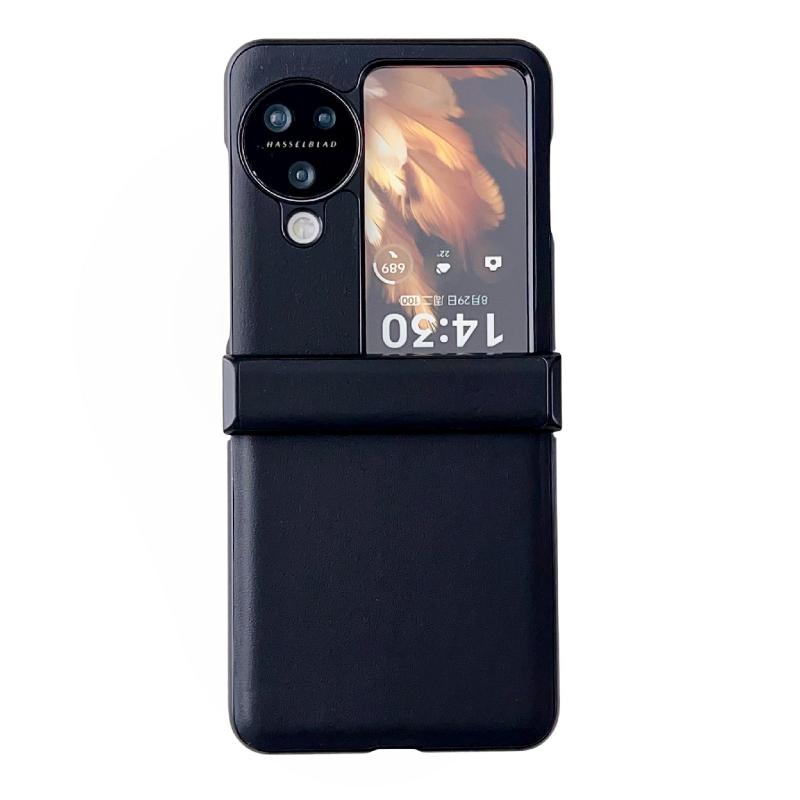 For OPPO Find N3 Flip Three-piece Set Morandi Solid Color Leather Texture Phone Case(Black)
