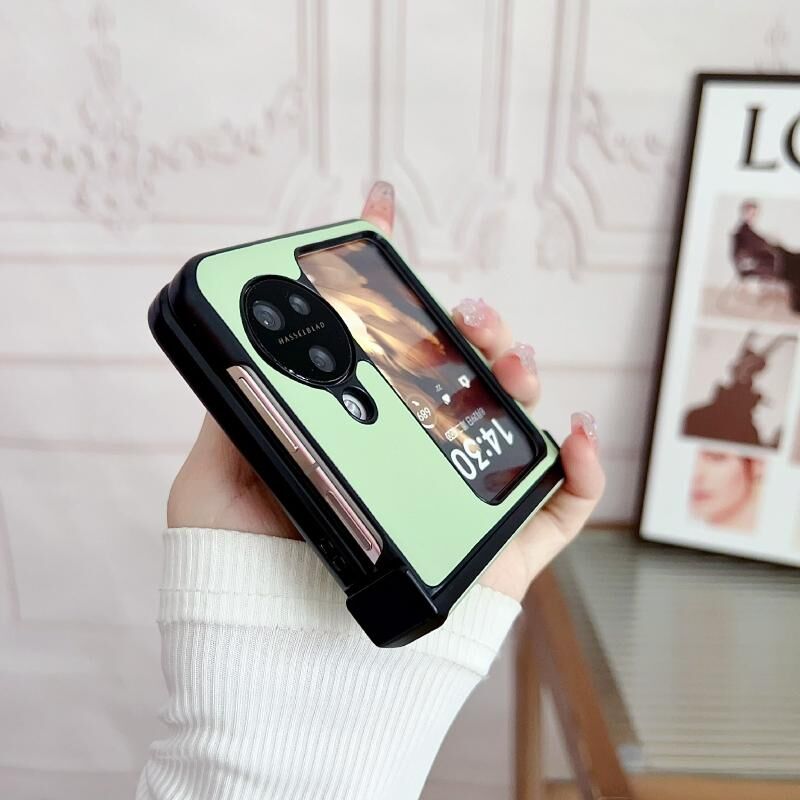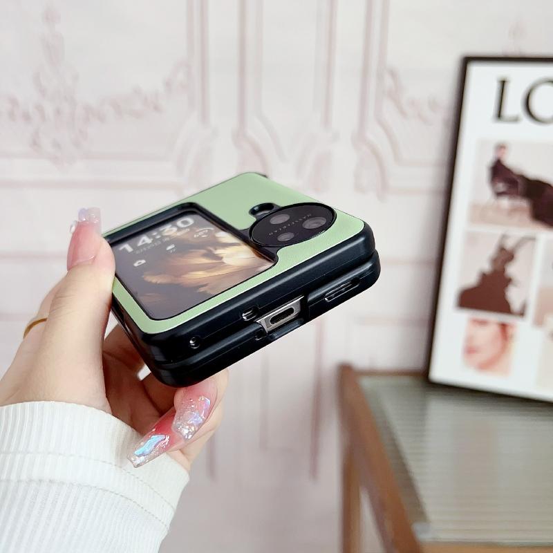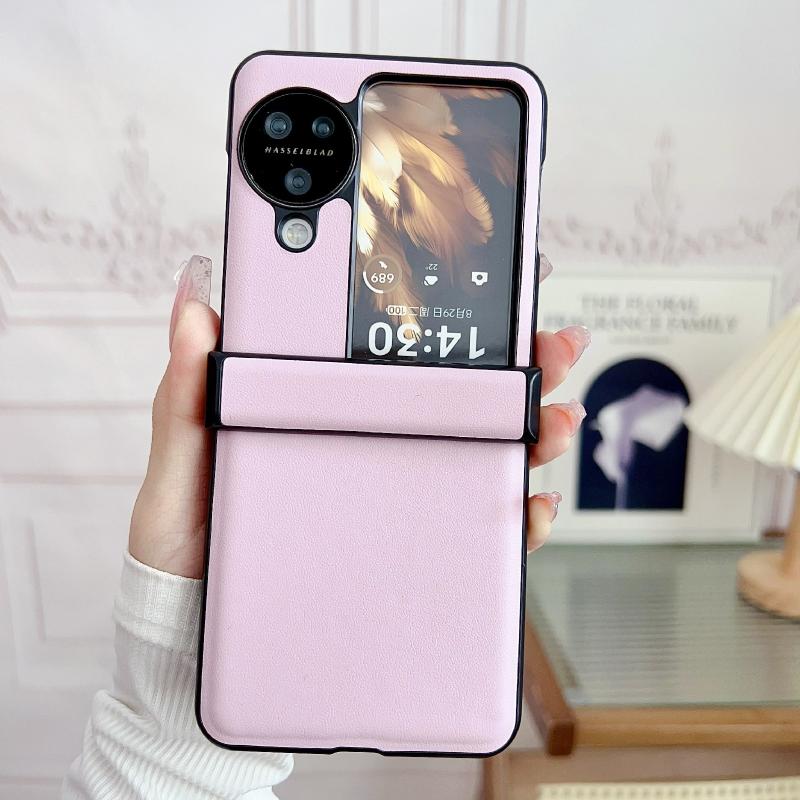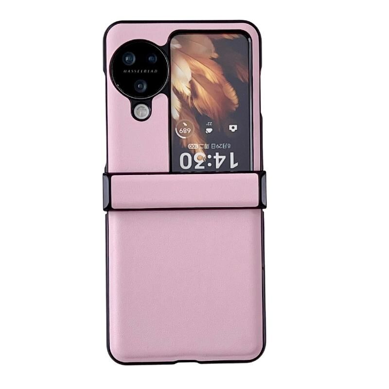 For OPPO Find N3 Flip Three-piece Set Morandi Solid Color Leather Texture Phone Case(Pink)