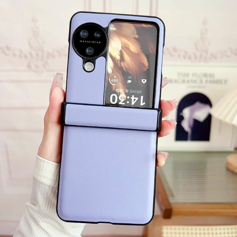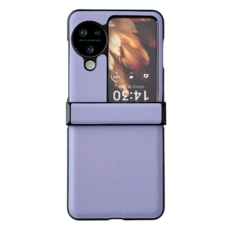 For OPPO Find N3 Flip Three-piece Set Morandi Solid Color Leather Texture Phone Case(Purple)