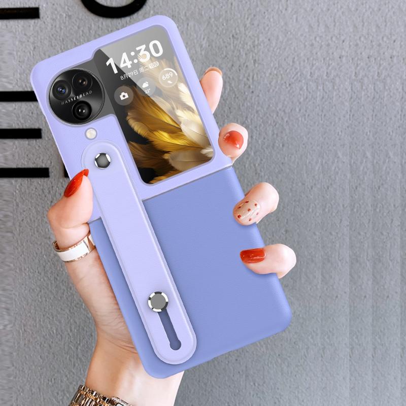 For OPPO Find N3 Flip Wrist-strap Plain Leather Phone Case(Blue)