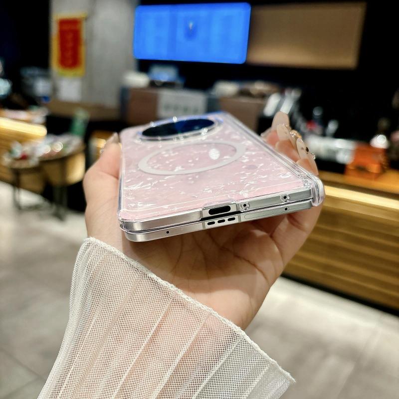 For OPPO Find N5 Magnetic Axis Pearlescent Shell Texture MagSafe Phone Case(Pink)