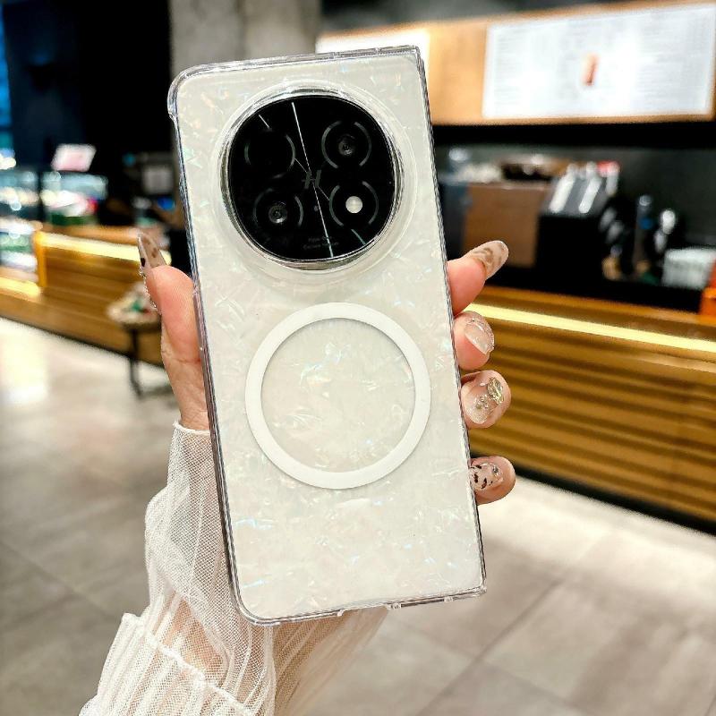 For OPPO Find N5 Pearlescent Shell Texture MagSafe Phone Case(Beige)