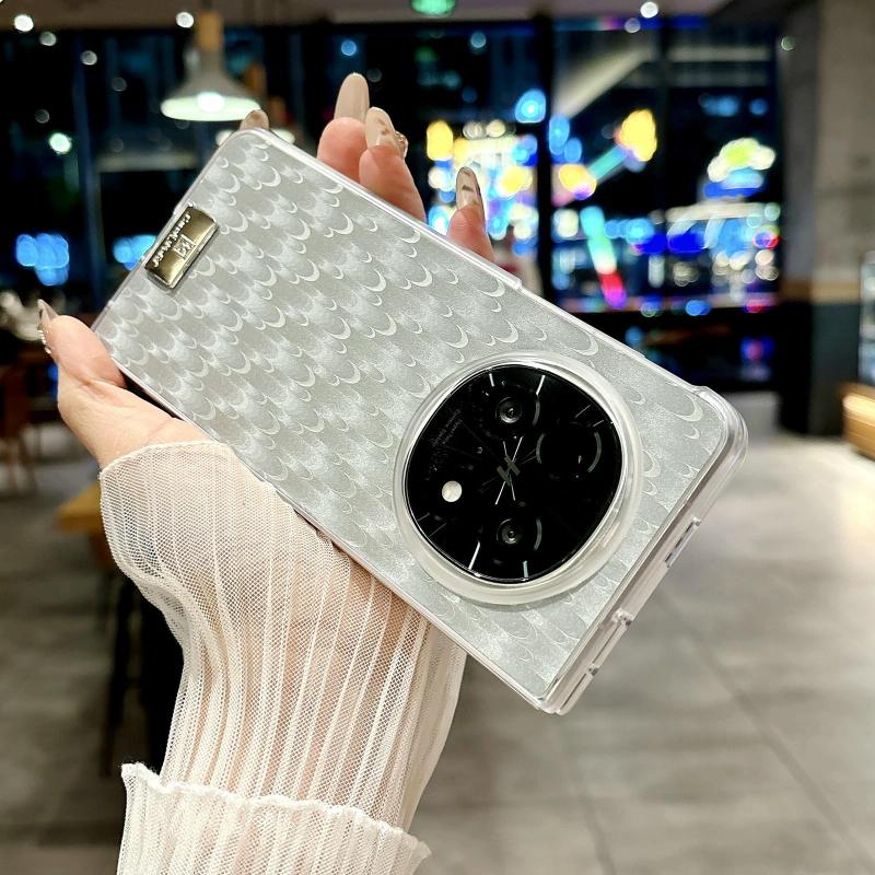 For OPPO Find N5 Transparent Edge Peacock Texture Phone Case(White)