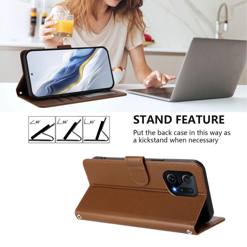 For OPPO Find X5 Embossed Heart Cat Leather Phone Case with Hand Strap(Brown)