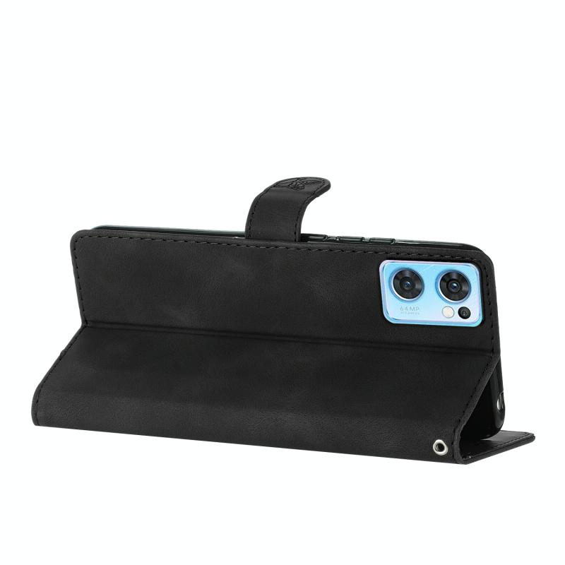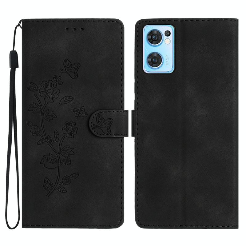 For OPPO Find X5 Lite / Reno7 5G Flower Butterfly Embossing Pattern Leather Phone Case(Black)