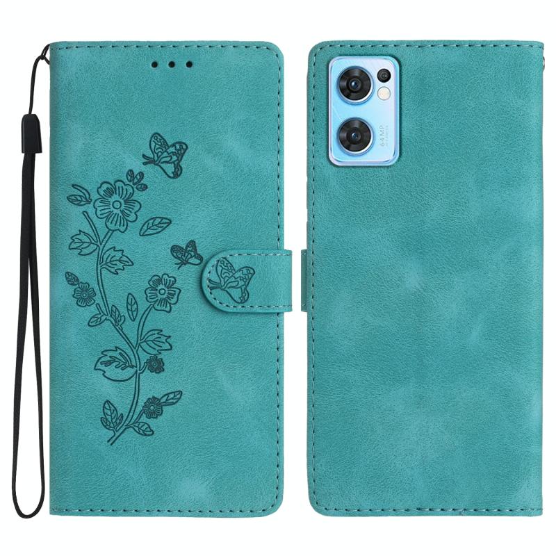 For OPPO Find X5 Lite / Reno7 5G Flower Butterfly Embossing Pattern Leather Phone Case(Sky Blue)