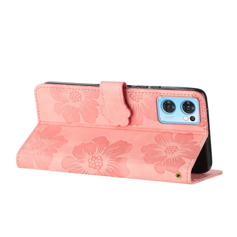 For OPPO Find X5 Lite / Reno7 5G Flower Embossing Pattern Leather Phone Case(Pink)