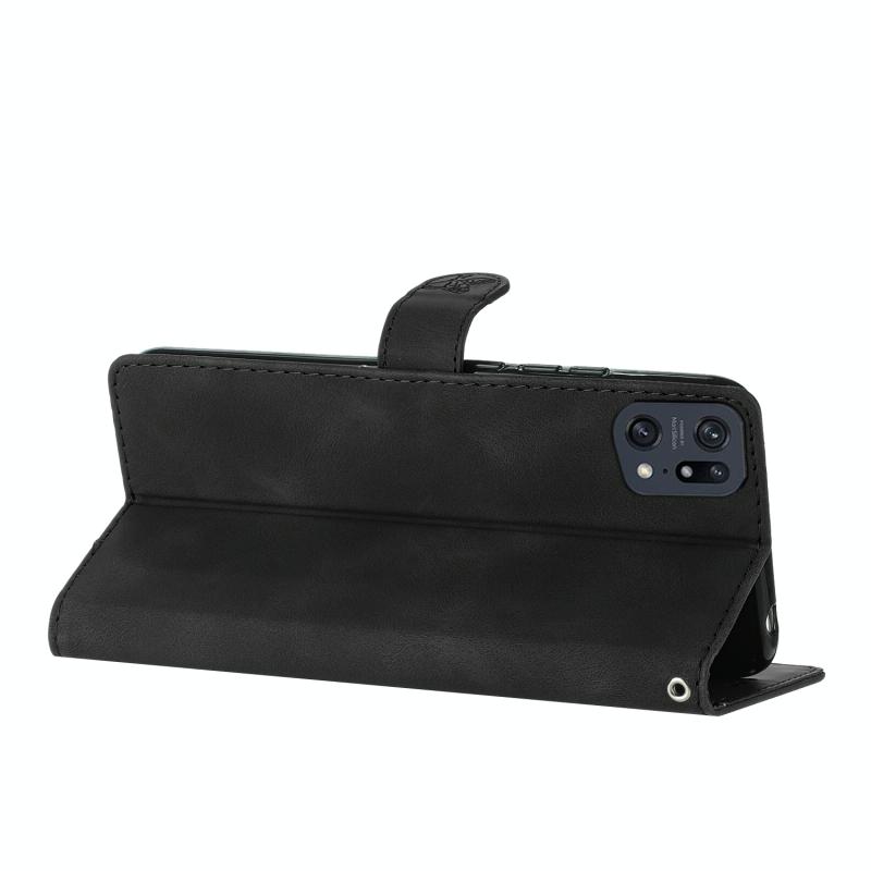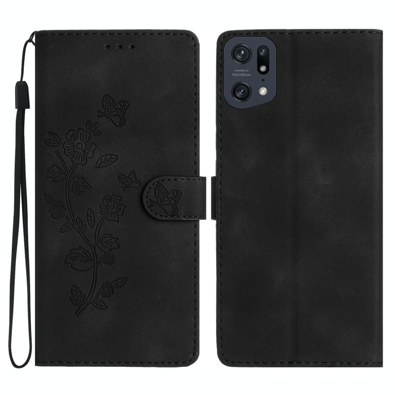 For OPPO Find X5 Pro Flower Butterfly Embossing Pattern Leather Phone Case(Black)