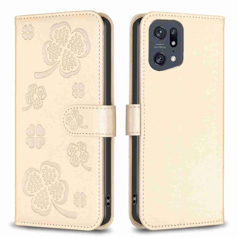For OPPO Find X5 Pro Four-leaf Embossed Leather Phone Case(Gold)