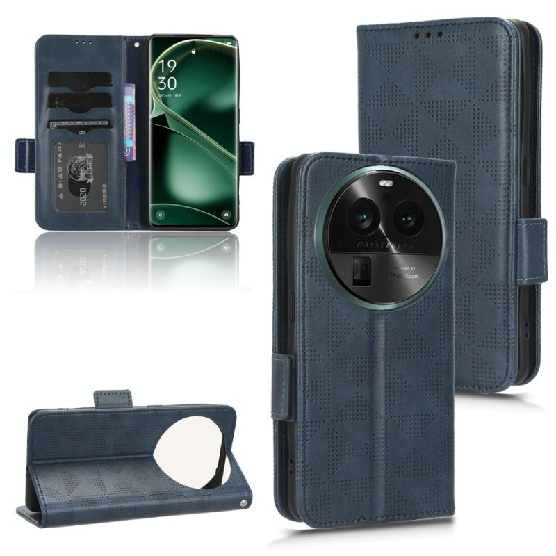 For OPPO Find X6 5G Symmetrical Triangle Leather Phone Case(Blue)