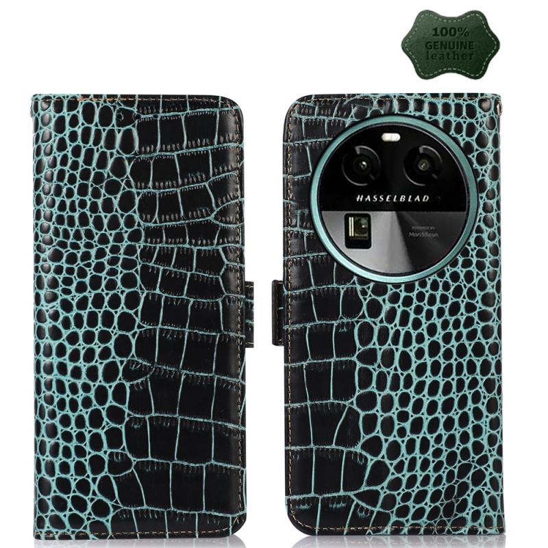 For OPPO Find X6 Crocodile Top Layer Cowhide Leather Phone Case(Green)