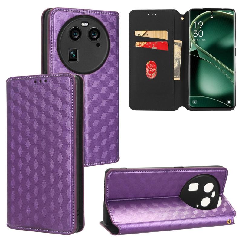 For OPPO Find X6 Cubic Grid Texture Flip Leather Phone Case(Purple)