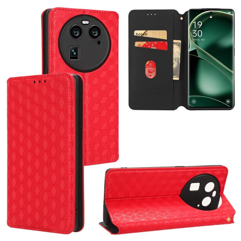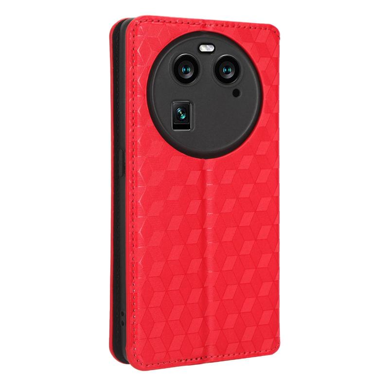 For OPPO Find X6 Cubic Grid Texture Flip Leather Phone Case(Red)