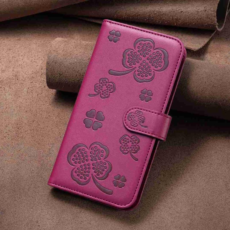 For OPPO Find X6 Four-leaf Embossed Leather Phone Case(Rose Red)
