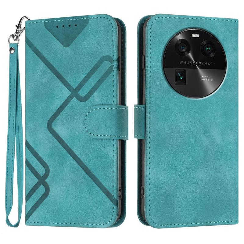 For OPPO Find X6 Line Pattern Skin Feel Leather Phone Case(Light Blue)