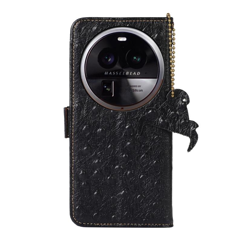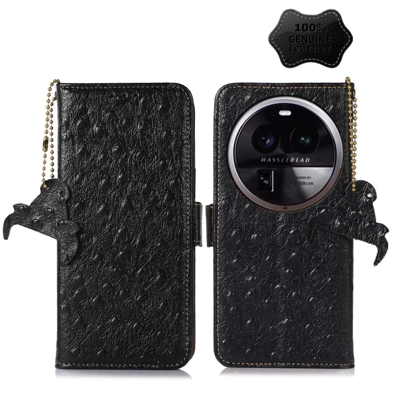 For OPPO Find X6 Ostrich Pattern Genuine Leather RFID Phone Case(Black)