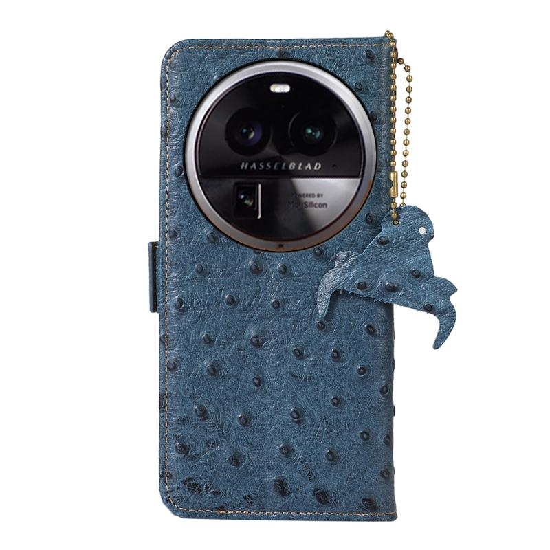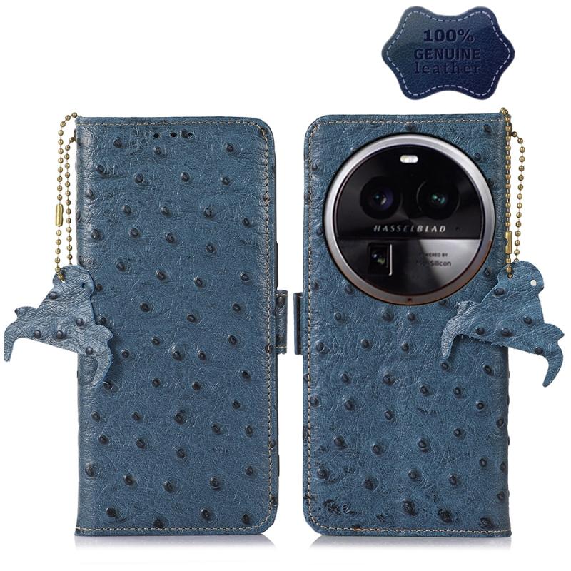 For OPPO Find X6 Ostrich Pattern Genuine Leather RFID Phone Case(Blue)