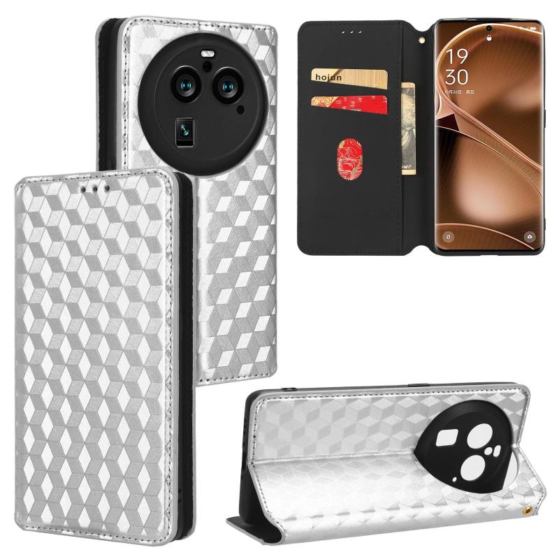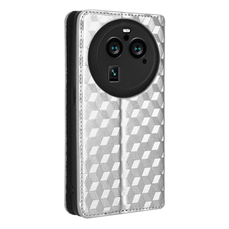 For OPPO Find X6 Pro Cubic Grid Texture Flip Leather Phone Case(Silver)