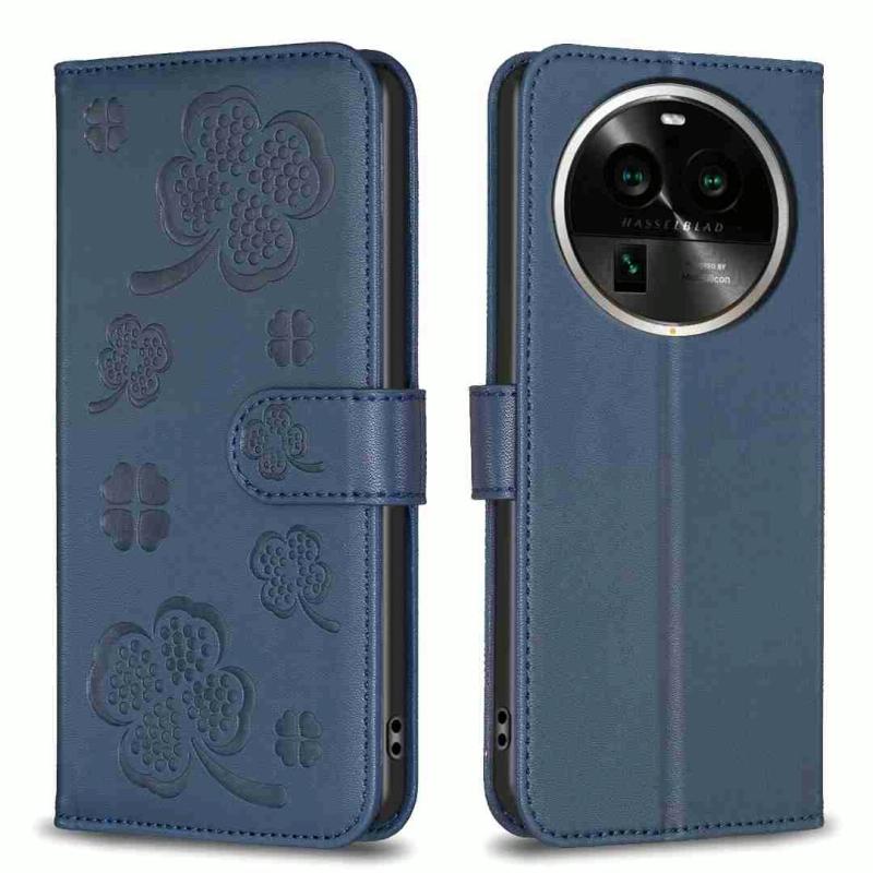 For OPPO Find X6 Pro Four-leaf Embossed Leather Phone Case(Blue)